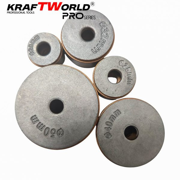 В комплекта са включени 5 накрайника с най-често използваните размери – Ø20, Ø25, Ø32, Ø40 и Ø50 мм, което покрива стандартните ППР тръби за битови и полупрофесионални водопроводни системи.