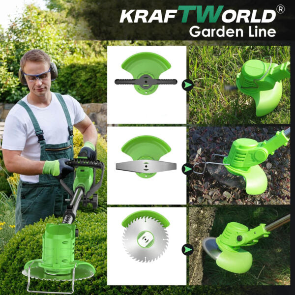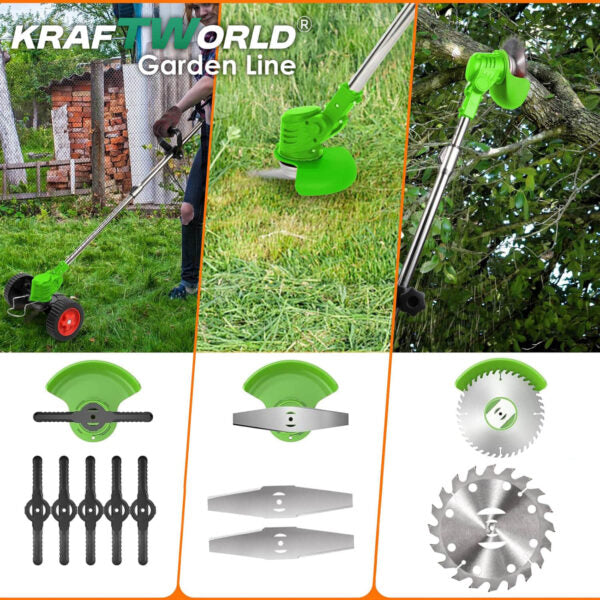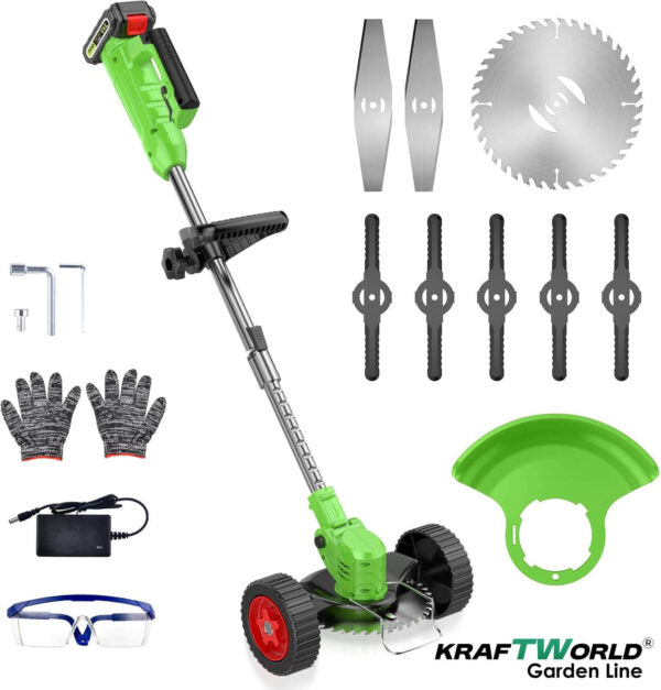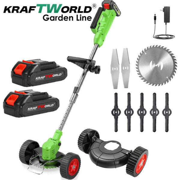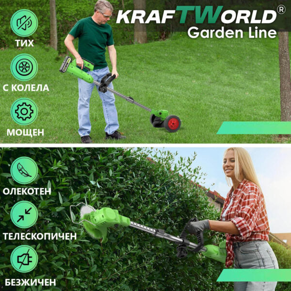 Акумулаторен Тример KraftWorld 36V 8Ah с Колела – Мобилна Косачка за Трева