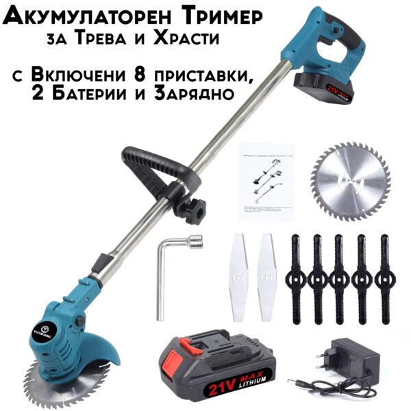 Открий новото поколение градинска грижа с акумулаторния тример 21V 4Ah – твоят надежден партньор за чиста и добре оформена градина. Забрави за кабелите, горивото и досадните шумни машини – с този тример получаваш тиха, екологична и напълно безжична работа, където и да се намираш.