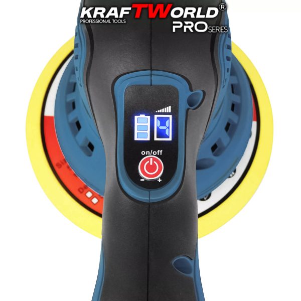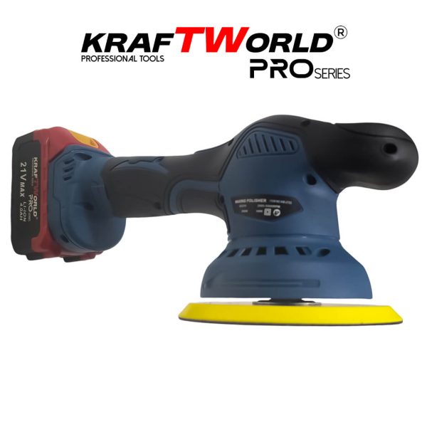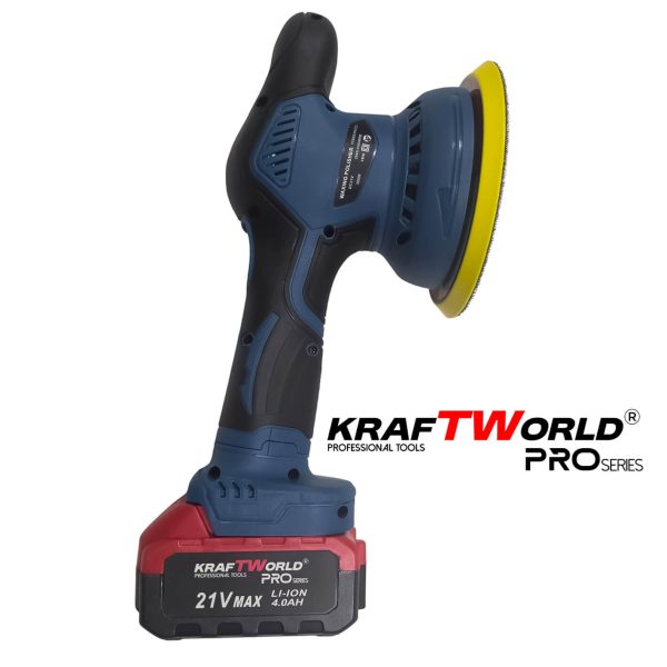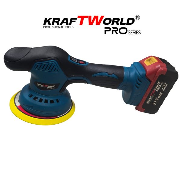 Акумулаторна ексцентрична полирмашина Ø150 мм KraftWorld 21V с 2 батерии и аксесоари