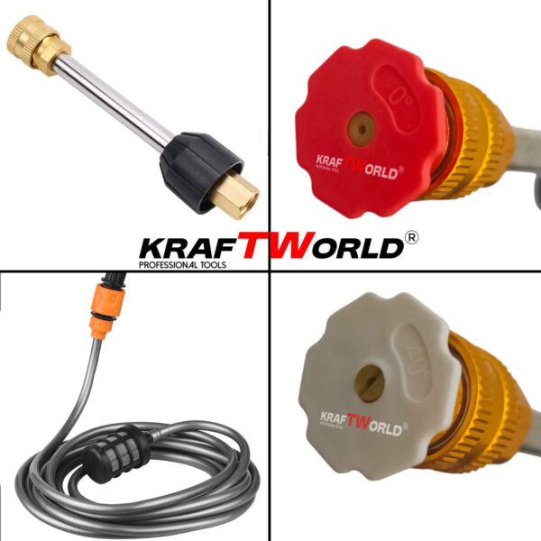 Представяме ви Kraftworld PRO – акумулаторната водоструйка, създадена да надмине очакванията ви! Независимо дали почиствате автомобила, двора, градинските мебели или велосипедите, тази машина ще се справи без усилие. С мощните си реални 21 волта и 4 ампера, тя гарантира стабилна работа и висока ефективност, без подвеждащи параметри. Забравете за слабите и неефективни уреди – тук получавате истинска мощност, на която можете да разчитате.