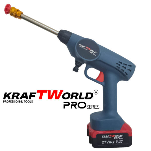 Акумулаторна Водоструйка Kraftworld PRO 21V 4Ah с 2 Батерии – Реални Параметри, 26 бара Налягане + Контейнер за Препарат и Аксесоари в Удобен Куфар high pressure cleaner