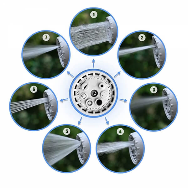 7-функционална дюза: shower, flat, mist, jet, cone и др.
