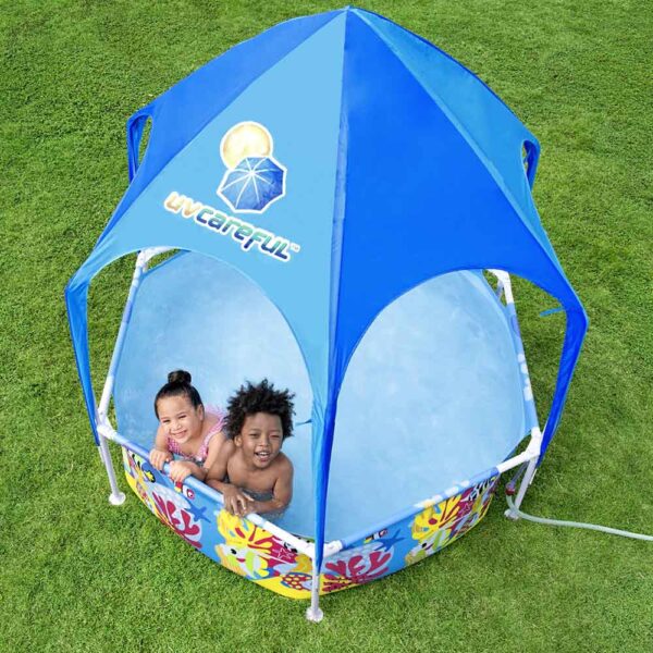 - UV защита – покривът намалява излагането на слънце и поддържа водата по-чиста