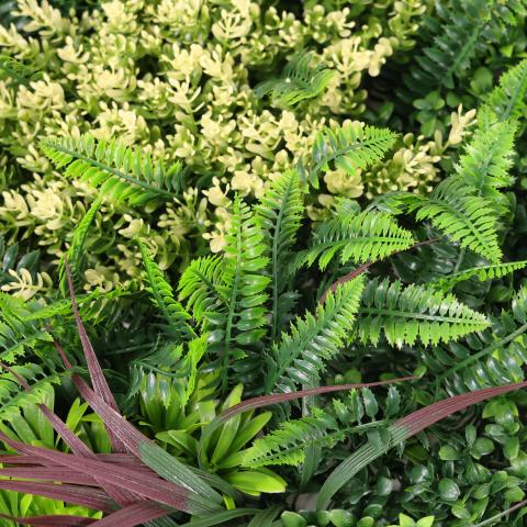 Този висококачествен панел с размери 100×100 см е идеалното решение за бързо и естетично покритие на огради, тераси, балкони, вътрешни стени и други пространства. Реалистичната комбинация от тревиста папрат и елегантни листа фаларис в различни нюанси на зелено и светло, придава дълбочина и натурална визия.