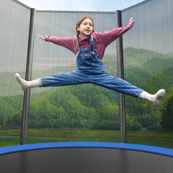 Високата мрежа (180 см) и широкото PVC покритие на пружините защитават децата по време на игра, без да ограничават пространството за скачане.