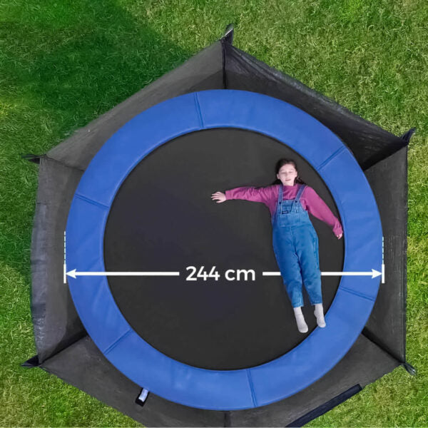 Представяме ти детски батут с диаметър 244 см, създаден за забавление, движение и сигурност. С подсилена конструкция, UV защита и водоустойчиви материали, този батут е подходящ за целогодишна употреба – на слънце, вятър или дъжд.