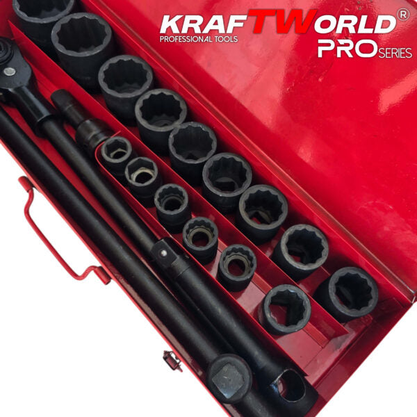 Гедоре комплект 21 части KraftWorld – 12-стенни ударни вложки за професионална употреба