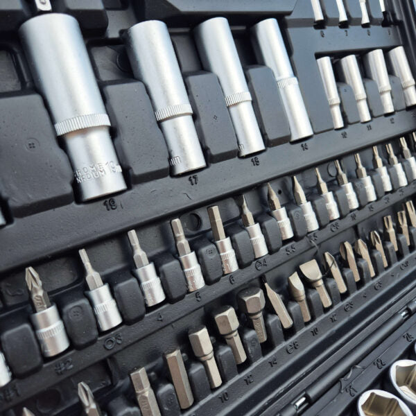 Този комплект предлага изключителна устойчивост и дълъг живот, благодарение на висококачествената хром-ванадиева стомана (Cr-V), която гарантира, че всяка част е изработена с внимание към детайла. Идеален както за професионалисти, така и за домашни майстори, той ще се справи с всяко предизвикателство. А сега се възползвайте от промоционалната цена и направете разумна инвестиция за дълготрайна употреба!