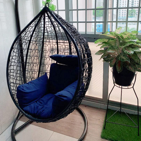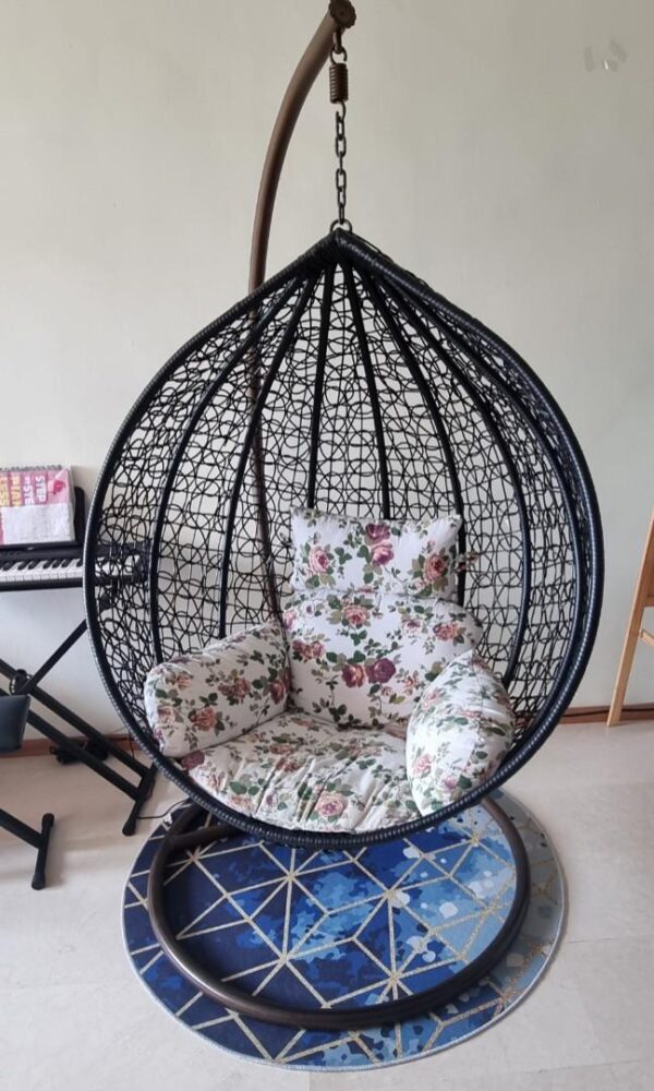 Голяма Черна Градинска Люлка – Висящ Ратанов Стол