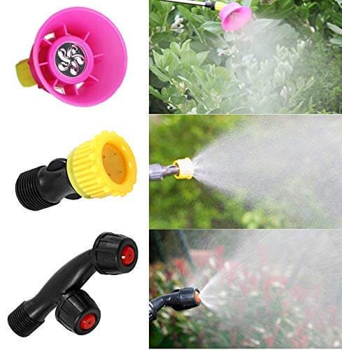 Пръскачката е оборудвана с три дюзи, които осигуряват различни режими на пръскане: единична за прецизно насочване, двойна за по-голямо покритие и тип “цвете” за деликатно разпръскване. Позволява пръскане под формата на фин прах, което гарантира равномерно покритие и ефективност при третиране на растенията.
