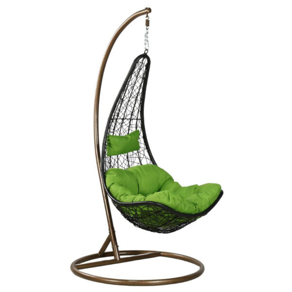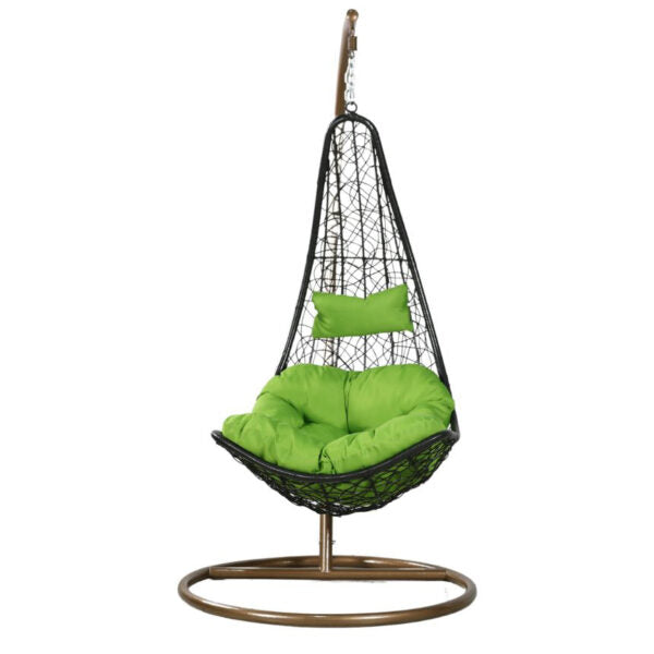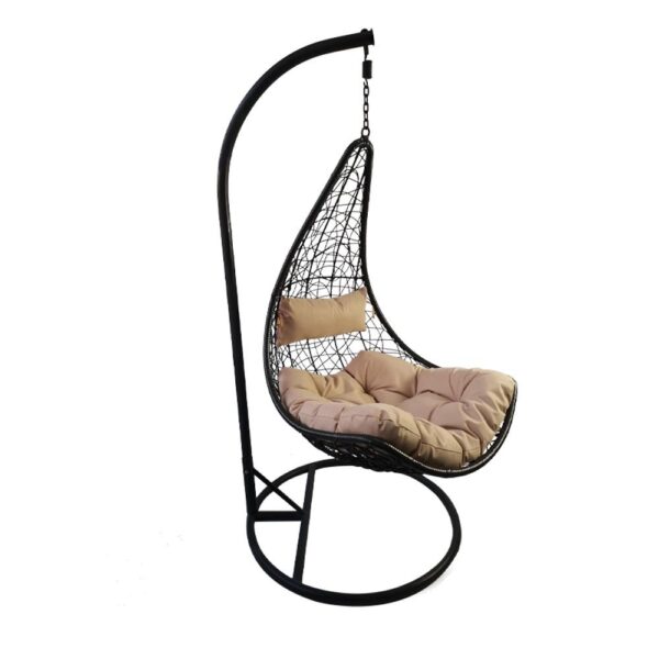 Люлката е оборудвана с меки възглавници, които ви обгръщат в уют и топлина, докато се наслаждавате на любимо питие или просто на прекрасната гледка около вас. Стилният дизайн на плетения от PVC ратан стол наподобява уютно гнездо, което предлага не само естетика, но и дълготраен комфорт. Водоустойчивият материал осигурява устойчивост на атмосферни влияния, което прави този висящ стол идеален за всякакви условия.