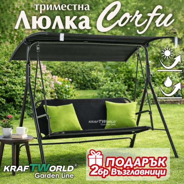 С размери 170 × 110 × 153 см, градинската люлка предлага достатъчно място за отдих, без да заема излишно пространство. Подходяща е както за двор и градина, така и за по-големи тераси.