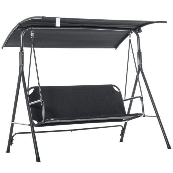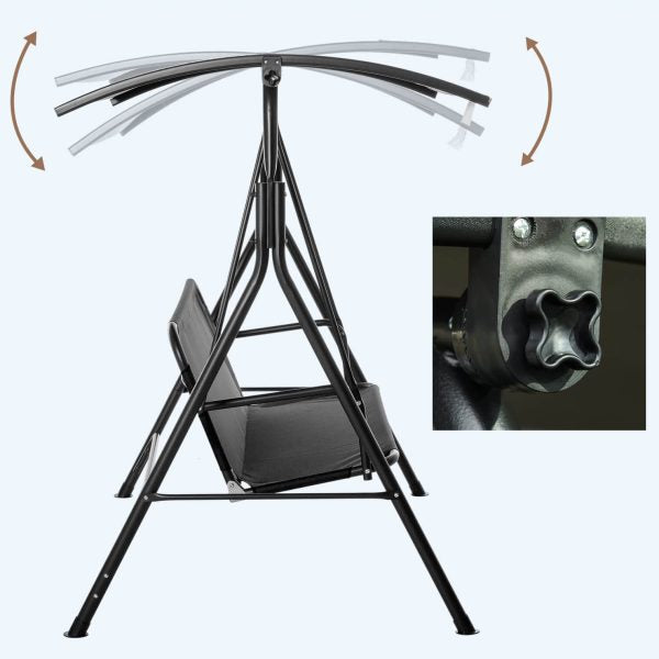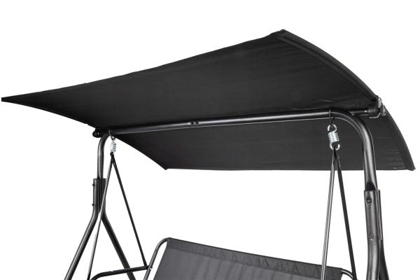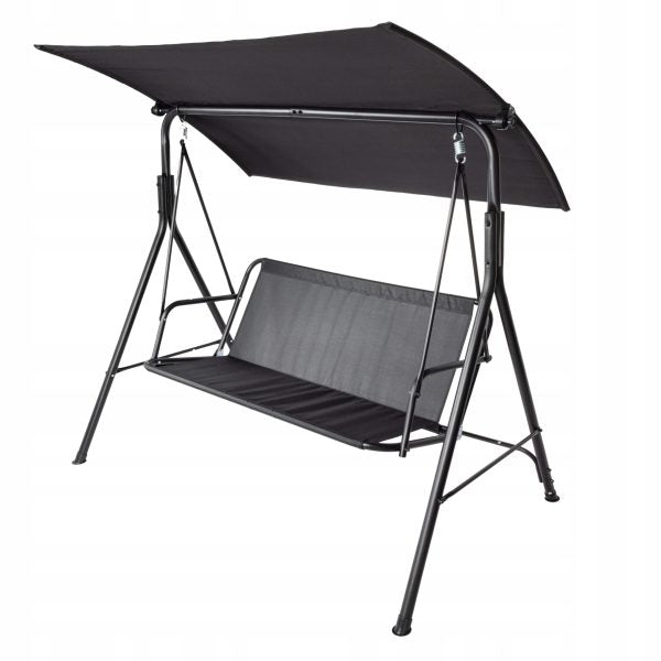 Тази градинска люлка със сенник е създадена за хора, които искат да се наслаждават на спокойни моменти в двора, градината или на терасата си. С изчистен черен дизайн и стабилна конструкция, тя се вписва еднакво добре както в модерна, така и в класическа външна среда.