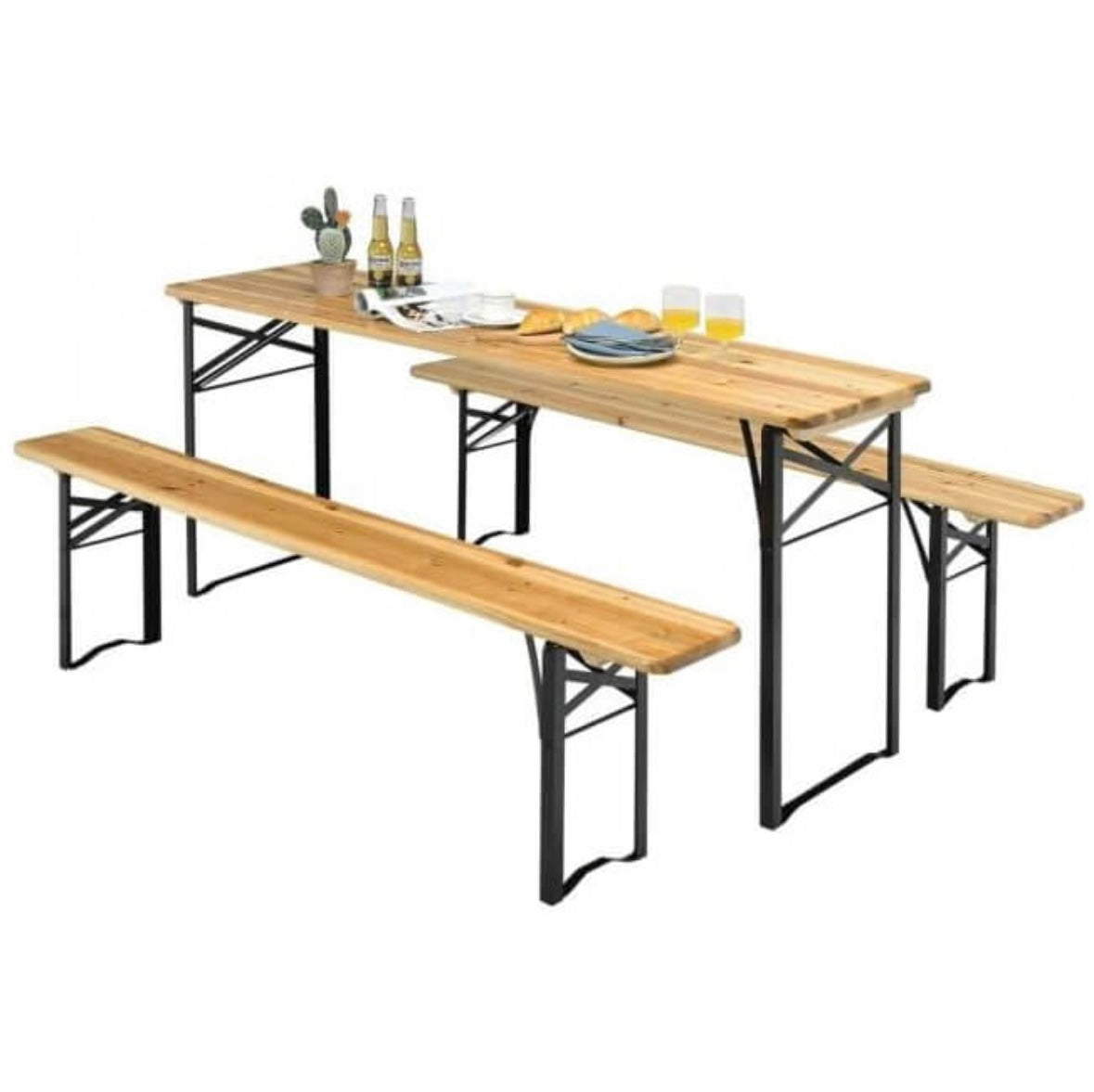 Този комплект с градинска маса и две пейки е създаден за да превърне всяко открито пространство в предпочитано място за събирания и релакс. Независимо дали организирате барбекю, семейна вечеря или просто искате да се насладите на следобедно кафе сред природата – това е вашето решение.