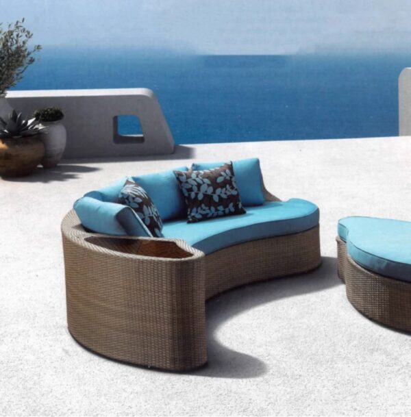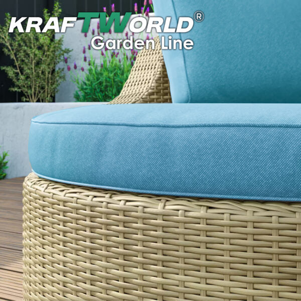Възглавниците са в стилен морско син цвят, който носи усещане за свежест и елегантност. Включени са общо 8 броя възглавници – дебели подложки за сядане и облегалки, които предоставят отличен комфорт и уют при всяко сядане или лежане. Калъфките са с текстил, подходящ за външна употреба и лесен за поддръжка.