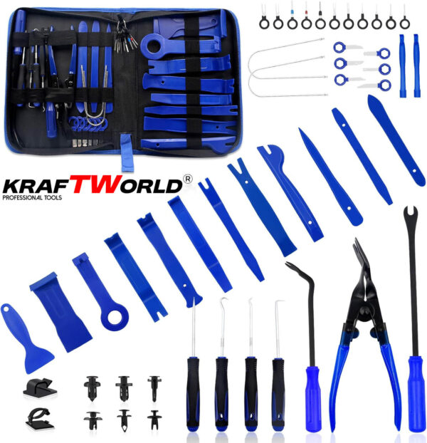 Представяме ти KraftWorld 200PCS – цялостно решение за демонтаж и монтаж на тапицерия, панели, лайсни, автощипки и кабели. Този комплект е създаден както за професионални автомонтьори, така и за ентусиасти, които искат да извършват поддръжка без да увредят вътрешността на автомобила си.