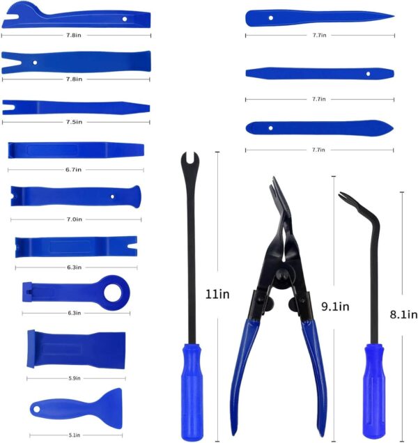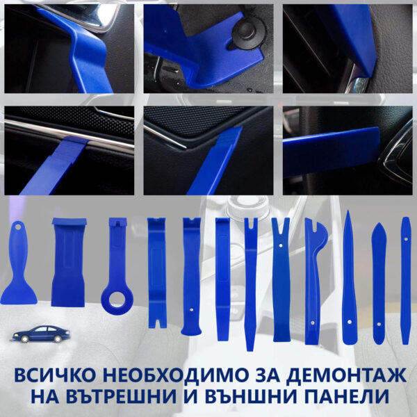 Изработени от висококачествена пластмаса и закален метал, инструментите са здрави, издръжливи и удобни за употреба. Формите им позволяват лесно проникване под панелите, без риск от надраскване или счупване на елементи.