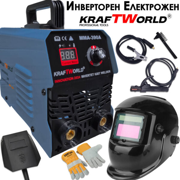 Инверторен Електрожен KraftWorld 160А с Подарък Соларна Маска и Ръкавици – Професионален Комплект