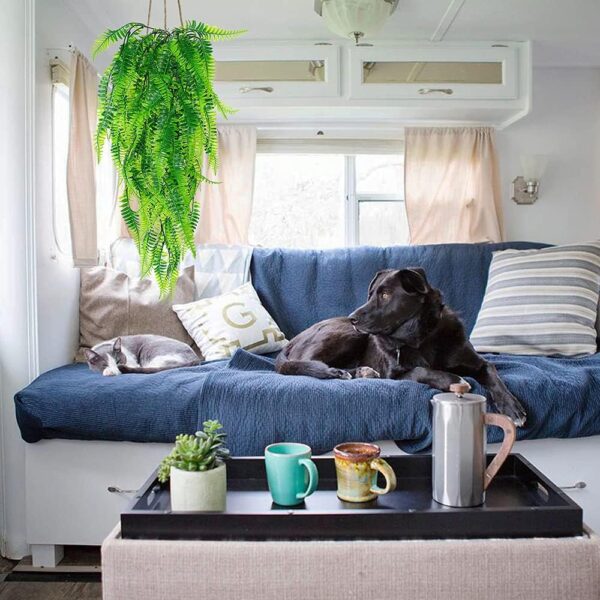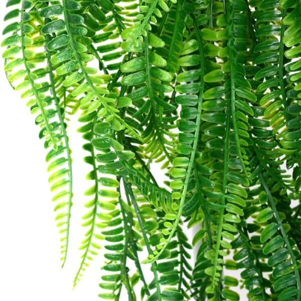Изкуственият папрат не изисква поливане, светлина или торене, което го прави идеален избор за заети хора или за места, където живите растения не виреят. Просто го поставете и се наслаждавайте на зеленината целогодишно.
