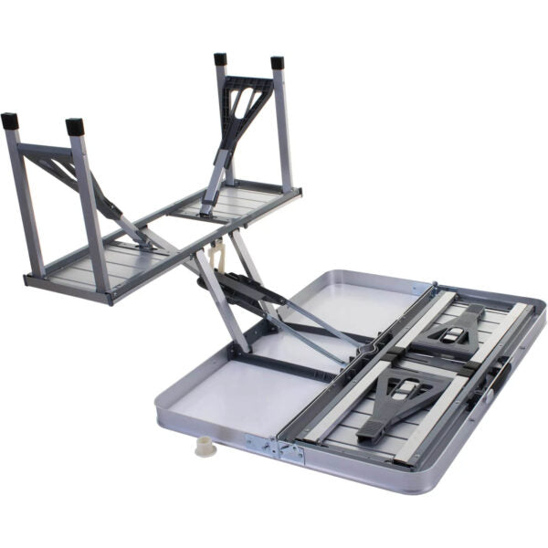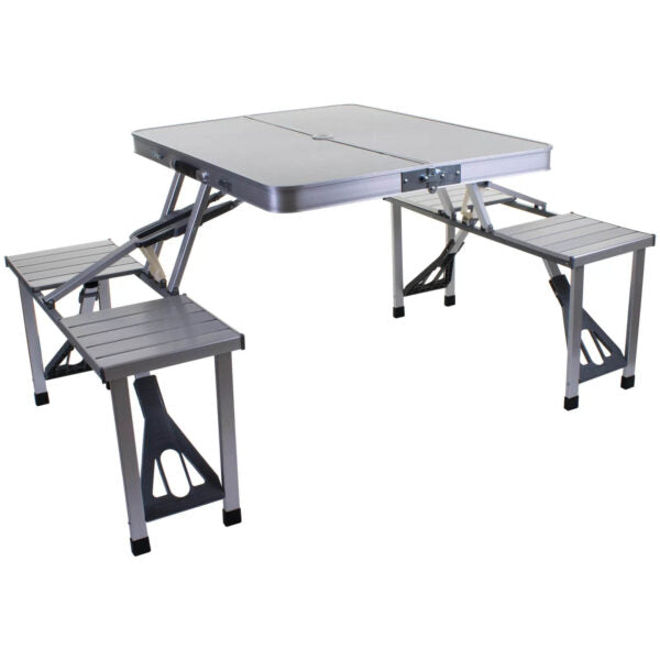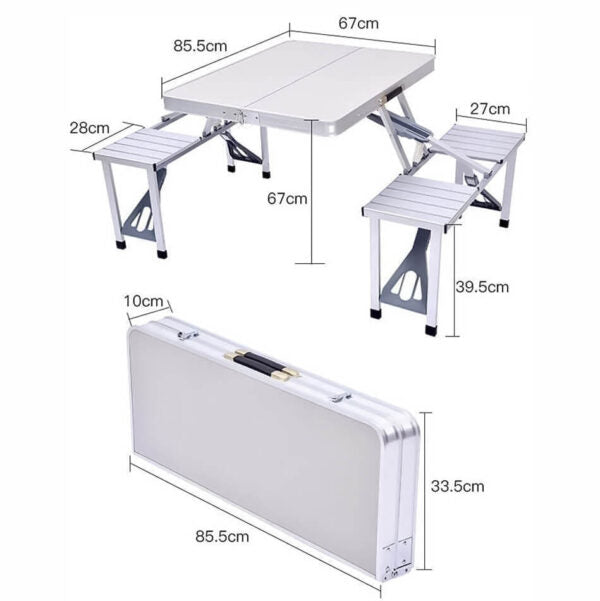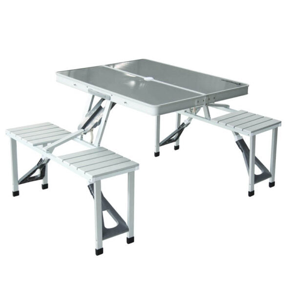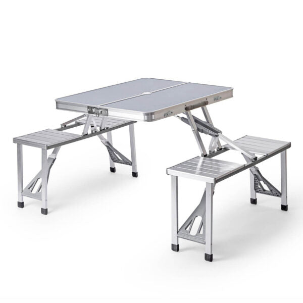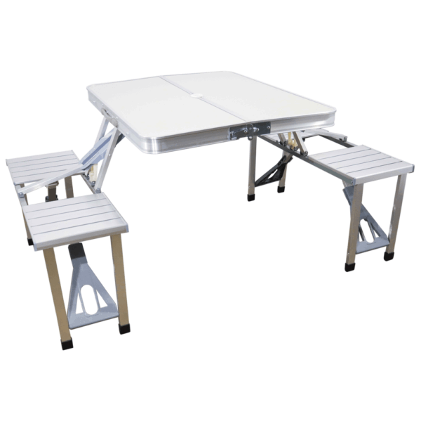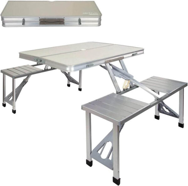 Търсиш надежден и компактен комплект за хранене и отдих сред природата? Представяме ти алуминиева къмпинг маса с 4 интегрирани седалки – проектирана с мисъл за стабилност, удобство и мобилност. Лека и лесна за сгъване в удобен куфар, тази маса е перфектният спътник за къмпинг, пикник, фестивал, риболов или семейна почивка.