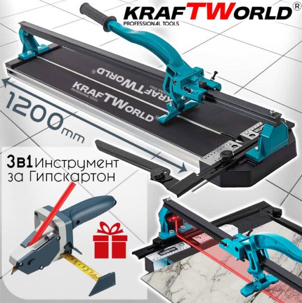 Промоционална оферта от KraftWorld – получавате всичко необходимо за професионални ремонти и строителство с една покупка! Вземете новия модел теракот машина за плочки до 1200 мм и като подарък получавате мултифункционален инструмент за рязане на гипсокартон и дървени материали! С тази комбинирана оферта ще работите по-ефективно, по-бързо и с по-малко усилия.