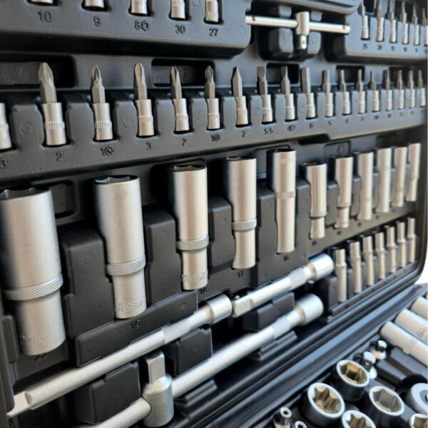 Представяме Ви гедоре комплект 172 части от KraftWorld, изработен от висококачествена хром-ванадиева стомана – гаранция за здравина, издръжливост и дълъг живот на инструментите. Този комплект е създаден, за да посрещне нуждите на професионалистите и да осигури надеждна работа при всякакви условия.