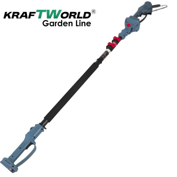 Създаден за професионалисти и ентусиасти, които не правят компромис с качеството, този комплект съчетава телескопичен прът и акумулаторна мини резачка с автоматично омасляване. Идеален за поддръжка на високи дървета, гъсти корони и труднодостъпни клони – всичко това без нужда от стълба или излишно усилие.