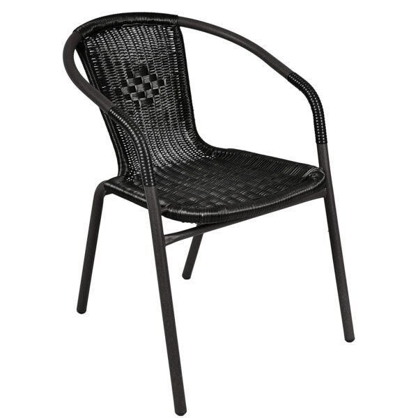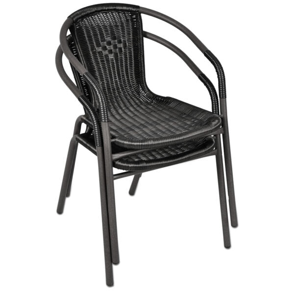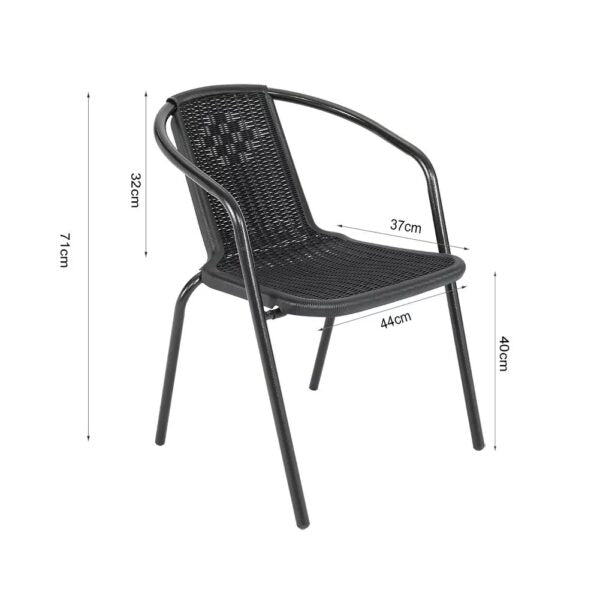 Столовете са с класическа извивка, метална конструкция и ратаново покритие, осигуряващи стабилност и удобство. Компактният дизайн позволява лесно прибиране и съхранение, особено подходящ за по-малки тераси и балкони.