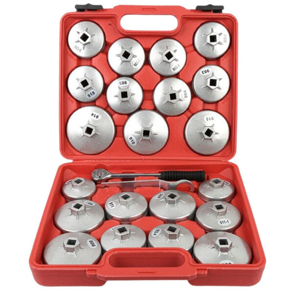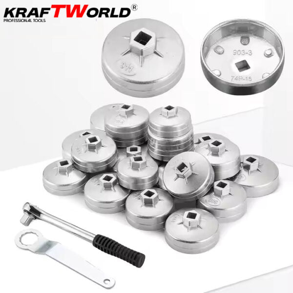 Търсите здрав и качествен инструмент за смяна на маслени филтри? Комплектът KRAFTWORLD (23 части) е изработен от алуминий, устойчив на ръжда, и е подходящ за широка гама автомобили – TOYOTA, VW, AUDI, BMW, MERCEDES, FORD, OPEL, FIAT и много други.