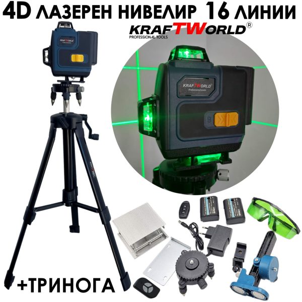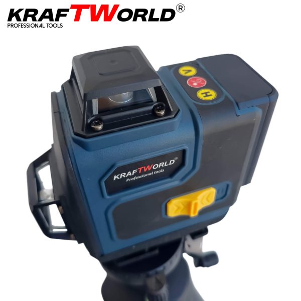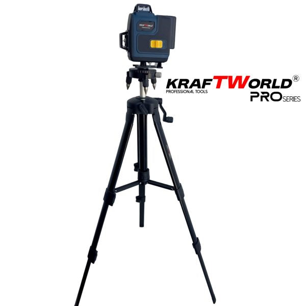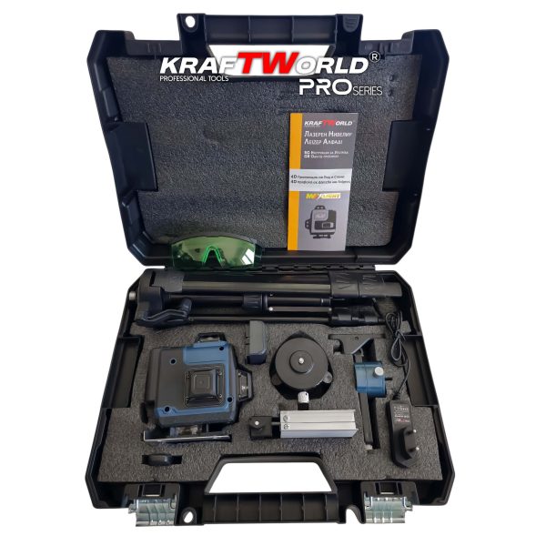 Лазерен нивелир Кraftworld 4×360° с тъчскрийн бутони, дистанционно и тринога в куфар