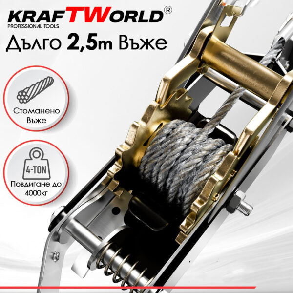 Лебедка KraftWorld 4т със стоманено въже – мощност и сигурност за професионалисти!
