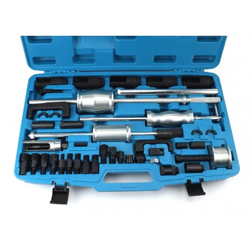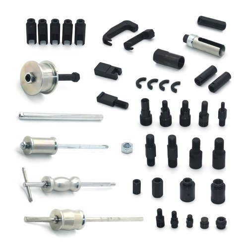 Комплектът за вадене на дюзи KRAFTWORLD (40 части) включва обратен чук и различни адаптери, съвместими с най-разпространените дизелови инжектори – Bosch, Delphi, Denso, Siemens и др.