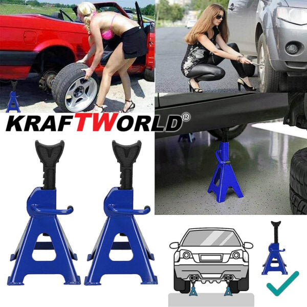Подпорните стойки KraftWorld са проектирани за надеждно и безопасно повдигане на автомобили с тегло до 3 тона. Изработени от здравa стомана, те осигуряват стабилност и дълготрайна употреба. Благодарение на регулируемата височина (от 29 см до 43 см), тези стойки са подходящи за различни видове превозни средства.