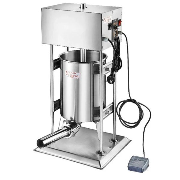 Електрическата пълначка за месо с капацитет 10 литра е създадена за професионална работа, където надеждност, бързина и контрол са ключови. Моделът осигурява стабилна и равномерна работа при подготовка на наденици, кайма и други месни деликатеси, което го прави идеален избор за месарски цехове, ресторанти и производства. ⚙️
