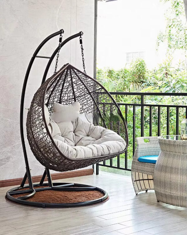 Създайте своя личен кът за релаксация с двуместния люлеещ ратанов стол ‘Comfort’ – най-голямата и устойчива градинска люлка на пазара, която издържа до 350 кг! Тази стилна и функционална люлка е изработена от висококачествен PVC ратан и здрава метална конструкция, предлагаща стабилност, сигурност и издръжливост във всякакви атмосферни условия.