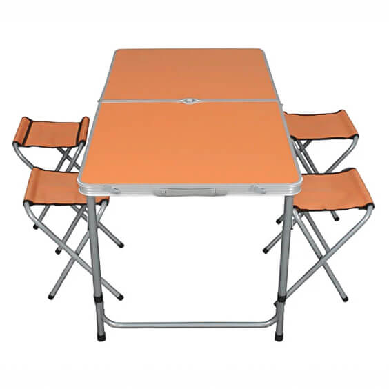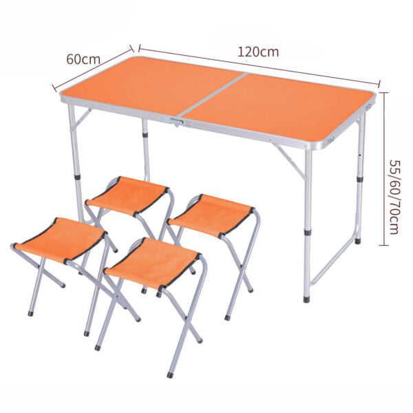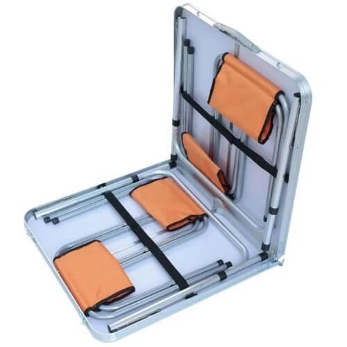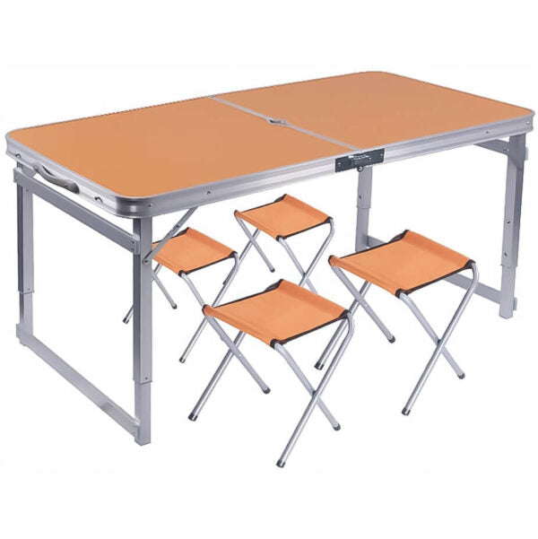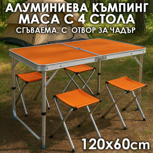 Този сгъваем комплект от алуминиева маса 120×60 см и 4 отделни столчета е създаден за всички, които обичат да прекарват време на открито с удобство и стил. Перфектен за къмпинг, пикник, двор, тераса, градина или пътуване – лесен за пренасяне, компактен и готов за употреба за секунди.
