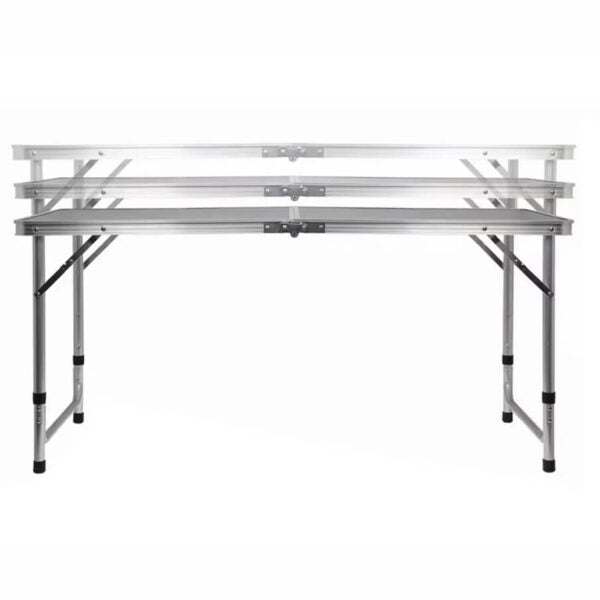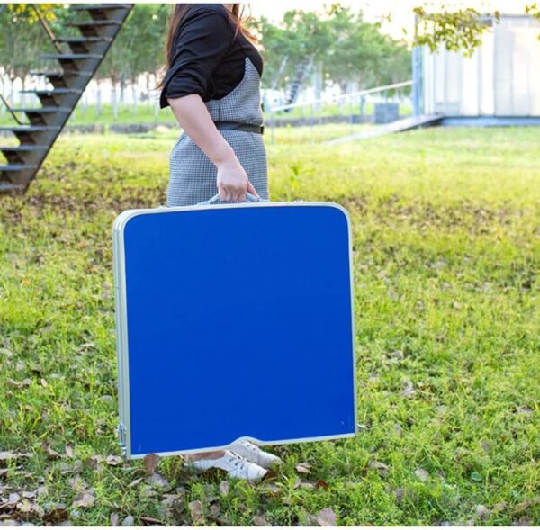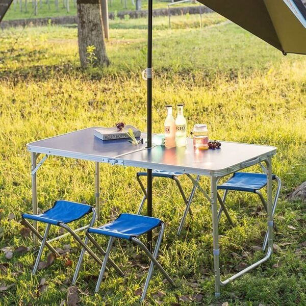 Този сгъваем комплект от алуминиева маса 120×60 см и 4 отделни столчета е създаден за всички, които обичат да прекарват време на открито с удобство и стил. Перфектен за къмпинг, пикник, двор, тераса, градина или пътуване – лесен за пренасяне, компактен и готов за употреба за секунди.