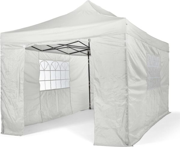 Едно от основните предимства на този модел е сгъваемият механизъм тип „Хармоника“, който позволява бързо и лесно разпъване – без нужда от допълнителни инструменти! Само с няколко движения шатрата е готова за употреба, а след събитието се прибира също толкова лесно.