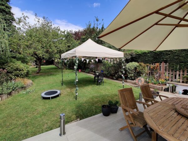 С размер 3×3 метра и височина 2,5 м, тя осигурява достатъчно пространство за настаняване на няколко души, маси и столове, правейки я идеална за събития на открито. Леката, но стабилна конструкция, както и компактният ѝ сгъваем дизайн, я правят удобна за транспортиране и съхранение.