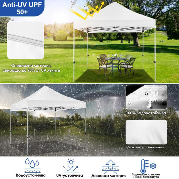 Без значение дали я използвате за търговски щанд, градинско събиране, пазар или къмпинг, тази шатра ще ви осигури нужния комфорт и защита!