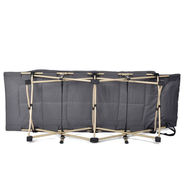 След употреба леглото се сгъва компактно, без разглобяване и без инструменти. Заема малко място и спокойно се побира в багажник, гараж или складово помещение.