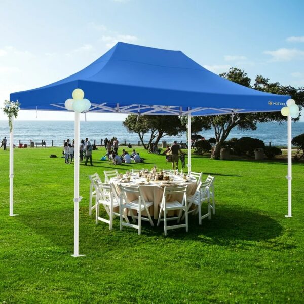 Синя Сгъваема градинска шатра 3×4.5м – здрава, водоустойчива и лесна за разпъване