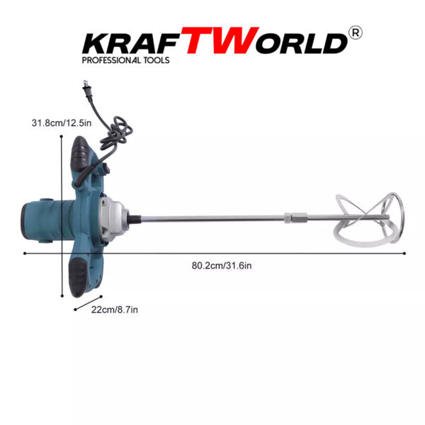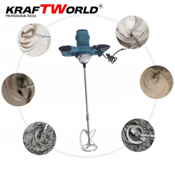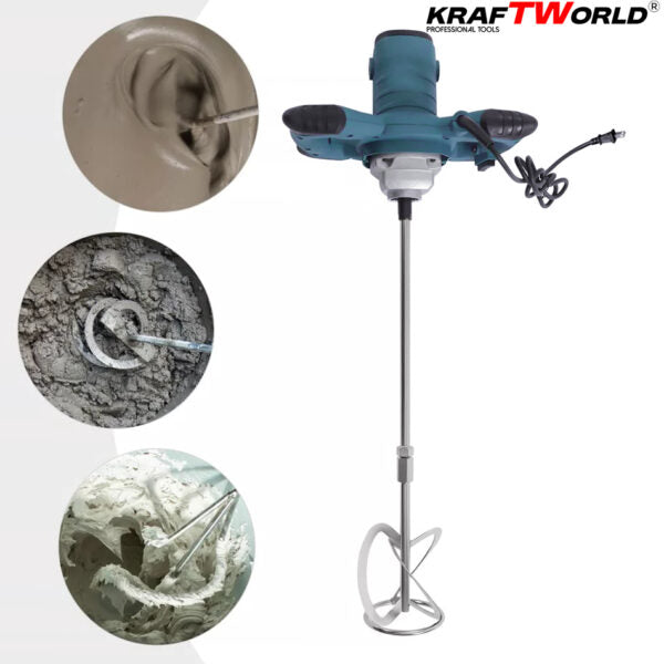 Миксерът за бетон KraftWorld е идеалното решение за професионалисти и любители в строителството. С мощния си двигател и три предавки за регулиране на оборотите, той осигурява прецизно и ефективно разбъркване на различни смеси – бетон, мазилки, бои, хоросан и други строителни разтвори.