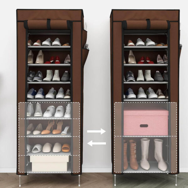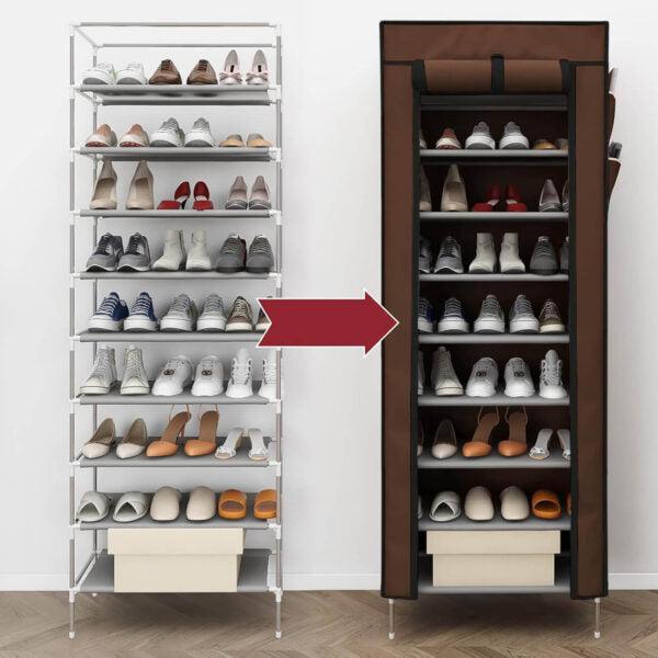 Изгубихте ли контрол върху подредбата на обувките вкъщи? Представяме ви шкаф за обувки с 9 реда, създаден да внесе ред, стил и удобство. Компактен, водоустойчив и съсзащитаващ покривало с цип – идеалният избор за съвременен дом!