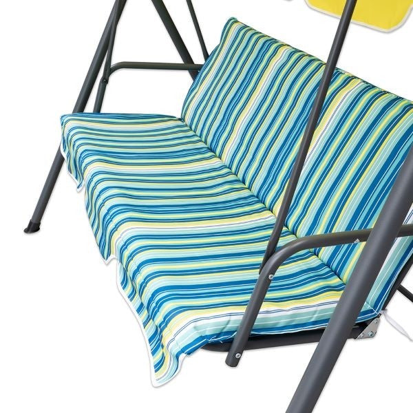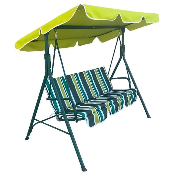 Люлката Тоскана в зелено-жълта райета комбинация внася усещане за лекота, свежест и слънчево настроение. Цветовете създават жив и приветлив акцент, който освежава двора или градината и прави люлката естествен фокус на външното пространство – идеална за летни дни и семейни моменти на открито.