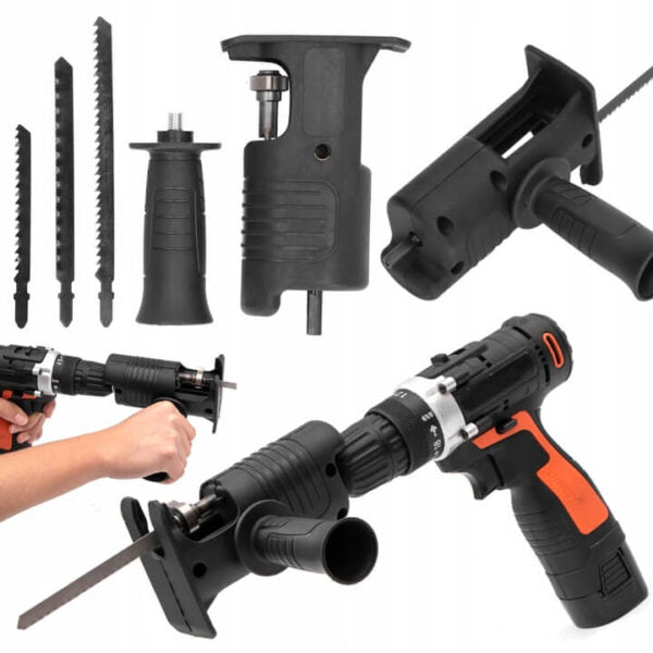 Универсален адаптер зеге за винтоверт и бормашина – компактно и практично решение за всеки майстор, който иска да използва своя винтоверт като прободен трион. С този умен аксесоар можеш лесно да режеш дърво, PVC или леки метали без нужда от отделна машина.