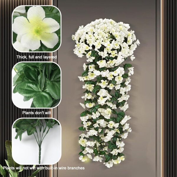Устойчив на различни метеорологични условия, този букет не избледнява и не се поврежда от слънце или влага. Идеален е както за декорация на врати и прозорци, така и за използване на тераси, беседки, заведения или сватбени арки.