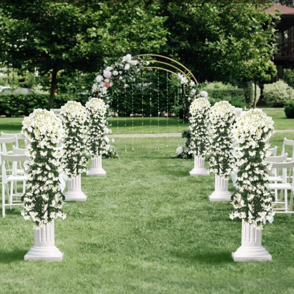 Със своята елегантна форма и реалистичен външен вид, този букет ще бъде чудесен акцент за входна врата, стена, балкон, арка или декорация на събитие. Изработен с внимание към детайла, той съчетава цветя и зеленина в Бял тон, създавайки усещане за свежест и лято през цялата година.
