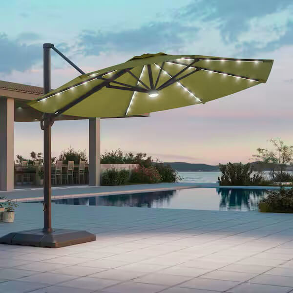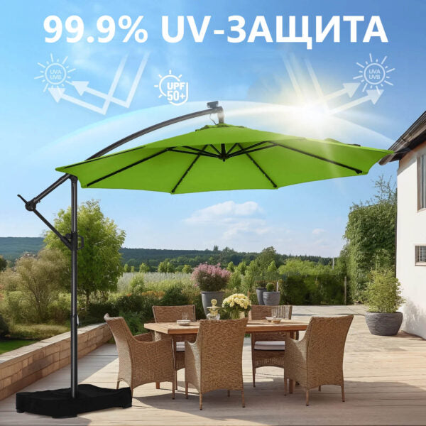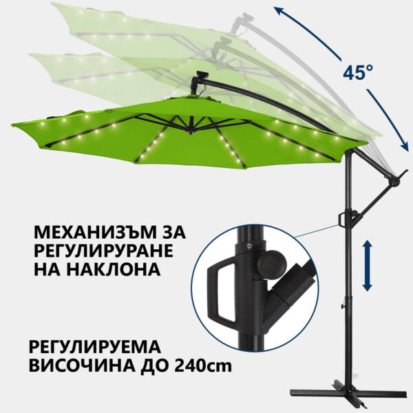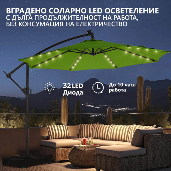 С този чадър ще превърнеш градината си в стилно и функционално място за отдих – денем ще се насладиш на плътна сянка, а вечерта – на уютна осветена атмосфера.